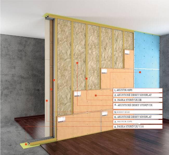 Odhlučnění dělící příčky varianta PREMIUM P dvojitý rám